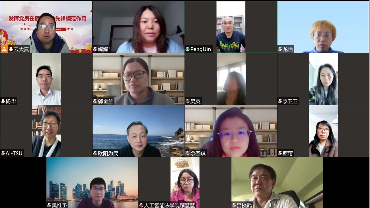 4月30日下午,人工智能法学院教工党支部以“发挥党员在疫情防控下的先锋模范作用”为题举行主题党日活动。会议采用在线方式,由支部书记潘晓辉主持。