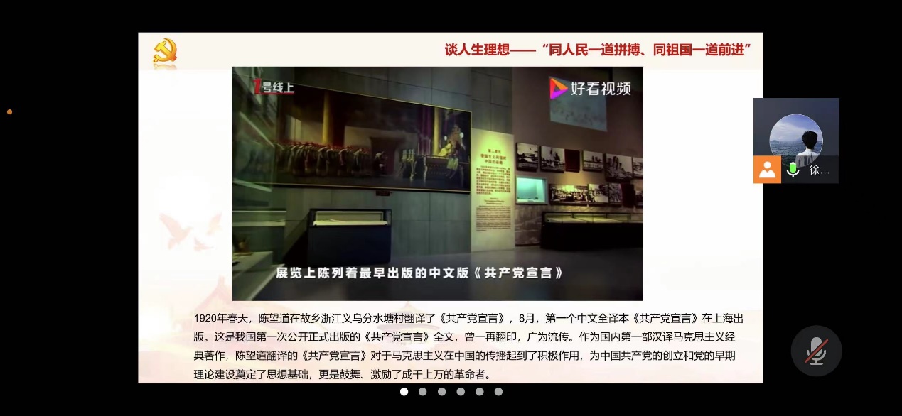 支部书记徐轶凡以《从总书记对青年的殷殷嘱托汲取前行力量》为题,围绕党的十八大以来习近平总书记对于广大青年提出的期望与要求,进行了专题党课授课。党课从“人生理想”“价值追求”“增强本领”等三个维度,深入学习了习近平总书记对广大青年的青春寄语和句句箴言,通过陈望道等革命先烈、黄文秀等青年楷模以及校园内的榜样力量,激励支部全体党员主动对标习近平总书记对于青年一代的要求,坚定“听党话、跟党走”的人生信仰,始终做社会主义核心价值观的积极传播者、模范践行者,刻苦学习、脚踏实地,在实践中锤炼过硬本领,真正成长为堪当民族复兴大任的时代新人。