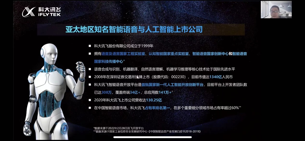为深入贯彻落实就业工作“一把手”工程,落实学校访企拓岗促就业“双百行动”要求,5月26日,人工智能法学院访企拓岗促就业“双百行动”走访调研活动顺利开展。人工智能法学院院长杨华、党总支副书记彭辉、副院长黄芹华、辅导员徐轶凡等以线上走访的形式,与科大讯飞(上海)科技有限公司、上海云之脑智能科技有限公司、上海托旺数据科技有限公司、番番数据(上海)科技有限公司进行调研交流,交流座谈会由副院长黄芹华主持。