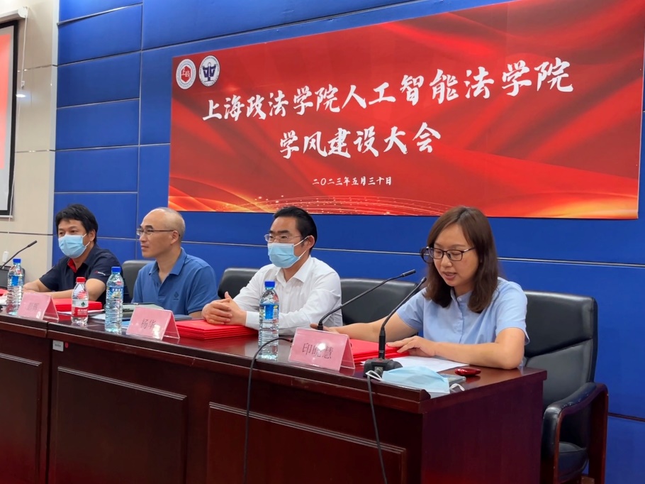 为深入开展学习贯彻习近平新时代中国特色社会主义思想主题教育,将主题教育的学习成果转化为推动事业发展的强大动力,努力推动学院学风建设开新局、谋新篇,以高质量学风建设赋能学院人才培养,5月30日中午,人工智能法学院于庸夫楼112举行学风建设大会。学院党总支书记彭辉,党总支副书记、院长杨华,副院长黄芹华、学工负责人印晓慧出席会议。学院全体教师,全体在校本科生、研究生参加会议。会议由印晓慧主持。
