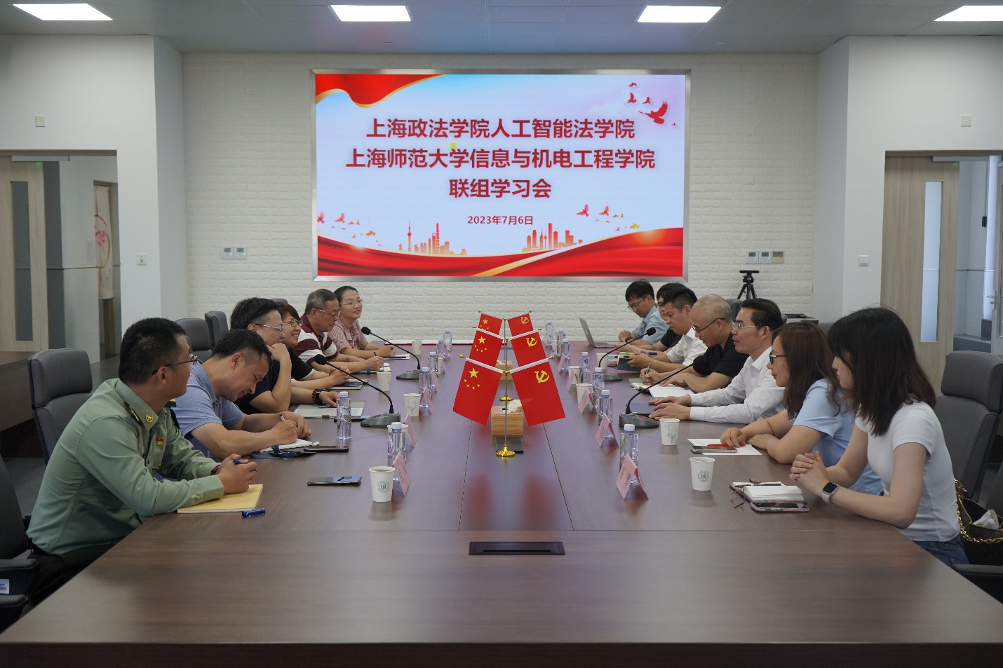为进一步推进新利18官方客服人工智能法学院党建与学科建设,提高学院交叉融合科研组织与人才培养水平,2023年7月6日下午,杨华院长率队赴上海师范大学信息与机电工程学院开展联组学习会,学院党总支书记彭辉、副院长黄芹华、学工负责人印晓慧以及教师吴惟予、陈琪、鲍坤等参加交流活动。上海师范大学信息与机电工程学院党委书记张春丽、院长张波等热情接待了人工智能法学院一行。