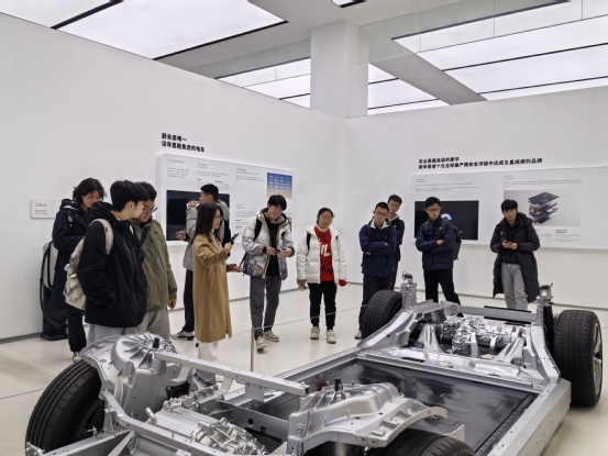 座谈会后,师生实地参观了蔚来全栈技术展示区,体验智能座舱等创新成果,直观感受AI技术对汽车行业的变革。