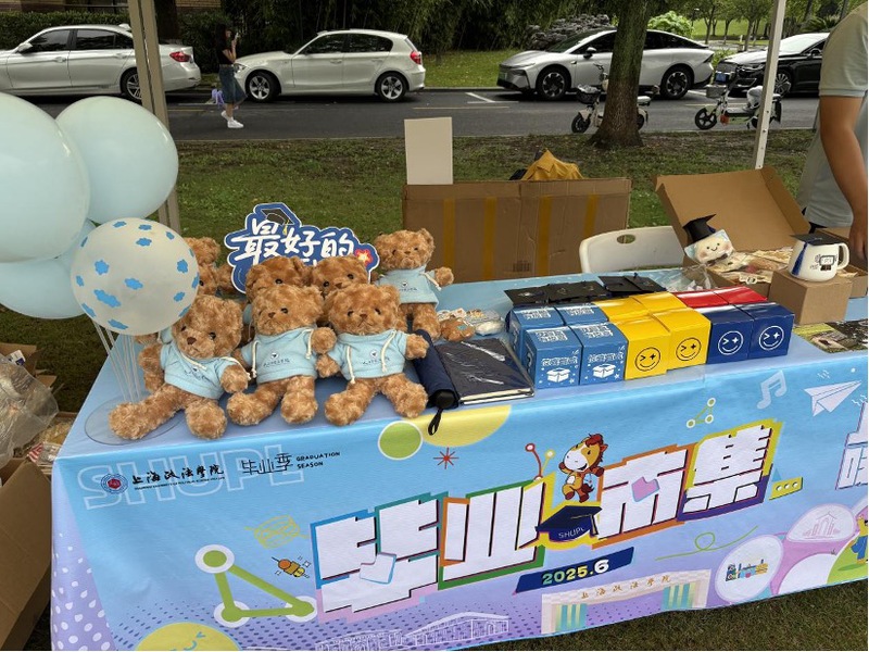 活动现场人头攒动,气氛热烈。市集区域陈列着为毕业生们精心挑选的各类纪念品,每一件物品都承载着独特的校园记忆:定制的校园风景钥匙扣记录着学子们学习生活的点点滴滴;智法笔记本上印刻着学院的精神传承;智法马克杯上印刻着我院的吉祥物形象;玩偶小熊身着带着院徽的卫衣,寄托着对母校的深深眷恋。这些精心准备的纪念品,无不体现着学院对毕业生的美好祝福。