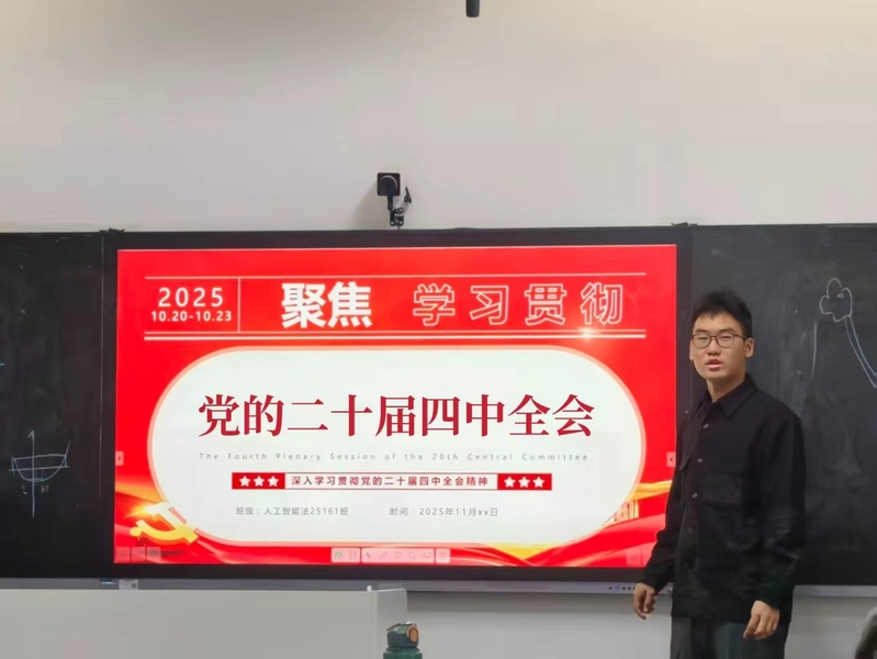 为推动党的二十届四中全会精神入脑入心、走深走实,各团支部以生动活泼的形式、丰富多样的手段开展了各有侧重的活动。具体包括:人工智能法24161团支部开展主题团课学习,由团支书作为领学人,用案例拆解全会要点,让团员借助具体案例理解“十五五”目标等核心内容,建立理论与实际联系,为后续践行全会精神打好基础;人工智能法25161团支部设置知识抢答趣味环节,设“奋进青年”小奖品,激发团员参与热情,巩固全会知识,强化奋进意识;人工智能法25701研究生团支部组织团员青年学习与讨论,围绕活动主题交流感悟,分享心得体会,增强理想信念与政治认同。