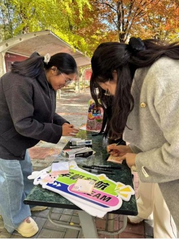 在“毛绒小羊”工作人员的引导下,同学们用水笔在小羊便利贴的正面写下自己的优缺点,没一会儿展板就被大家的“闪光时刻”贴得满满当当:“优点:没有缺点;缺点:没有其他优点”、“认真细心”、“喜欢尝试新鲜事物”...