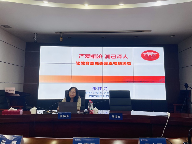 9月22日上午,上海财经大学马克思主义学院张桂芳教授为新进教师作“严爱相济 润己泽人——让教育变成美丽幸福的遇见”专题讲座。会议由人事处副处长马洪亮主持,新进教师30余人参加。