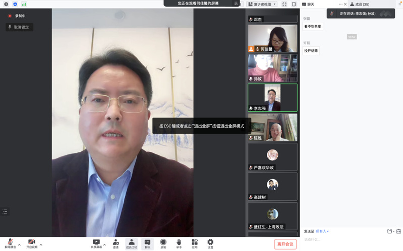 最后,国际金融法律学院院长代表主办方对与会专家的莅临表示感谢,并对大会做总后的总结:首先,此次年会正逢二十大顺利闭幕,二十大对“对外开放”提出了更好的要求,而本次年会主题正是对“对外开放”的法治问题进行具体回应;其次,本次与会专家虽少但精,既有理论学者也有实务专家,碰撞出了许多智识火花;再次,本次年会议题广泛,都是自贸试验区在当前建设中所遇到的重点问题,对实践应用大有裨益;最后,自贸试验区战略的法治研究对高校学术研究思路有深刻启发:我们既要进行学科建设,又要进行实践问题研究,以学科建设引领实践发展,才能促进学术研究更好发展。至此上海市法学会自贸区法治研究会2022年年会完成所有议程,宣布圆满结束。