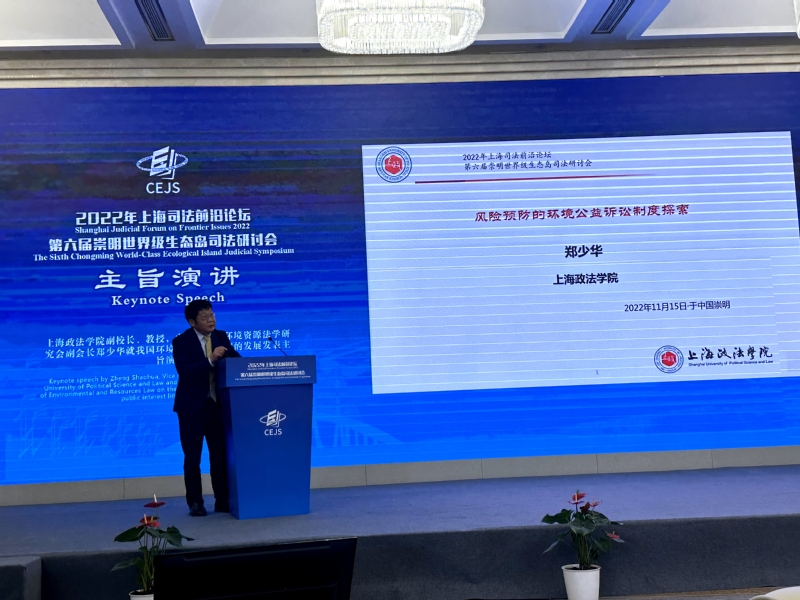 11月15日,“2022年上海司法前沿论坛 第六届崇明世界级生态岛司法研讨会”在上海崇明顺利举行。上海司法研究所所长郑少华教授参会并作题为“风险预防的环境公益诉讼制度探索”主旨发言。