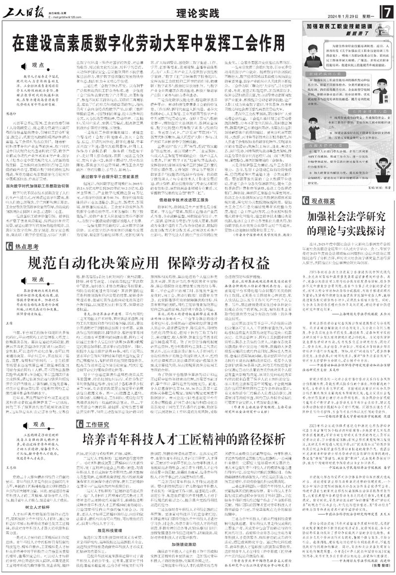 (来源:工人日报)算法管理的应用是科技创新和经济发展的结果,能够提升管理效率。但要对其作出的自动化决策进行合理纠偏,以规范其运行和发展,保障劳动者权益。