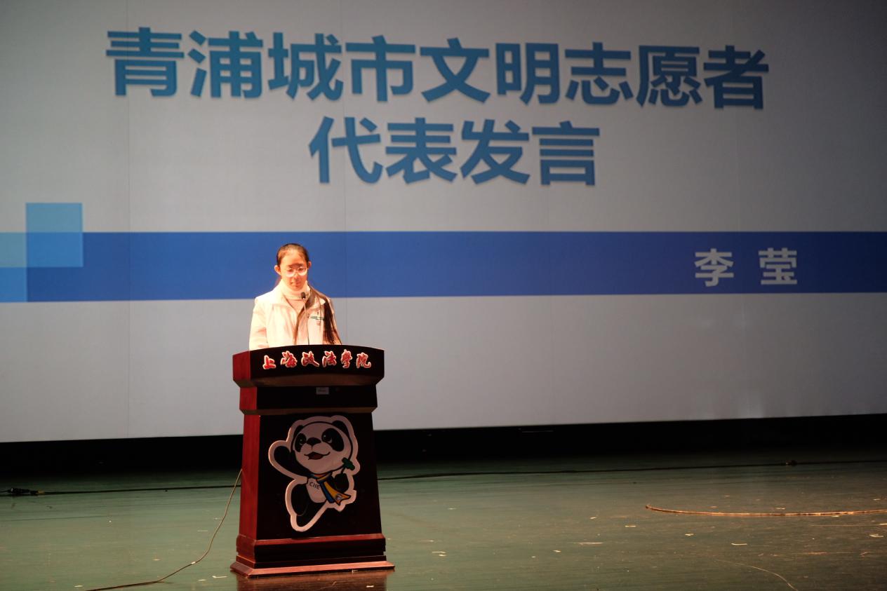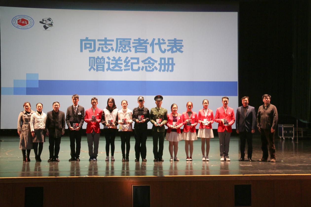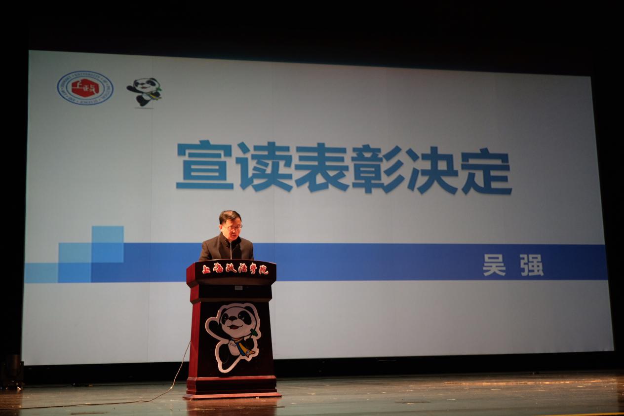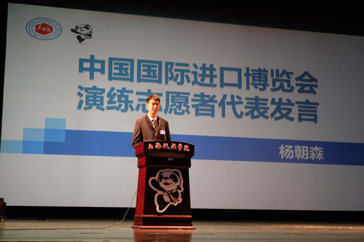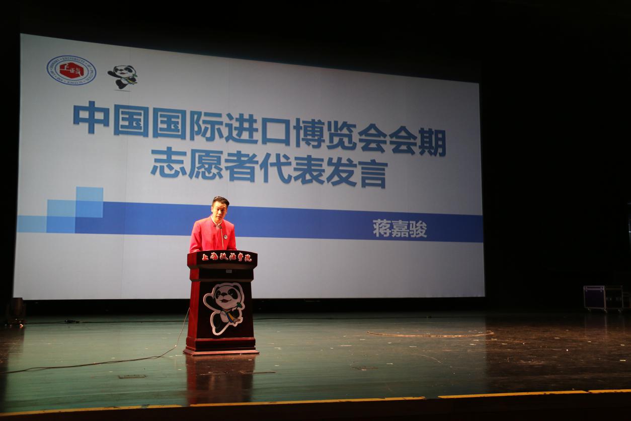 校党委副书记吴强代表学校宣读了《关于给予我校安景絮等740名志愿者通报表扬的决定》,充分肯定了我校大学生志愿者们在不同的岗位上以高度的政治责任感、使命感和为首届中国国际进口博览会提供了有温度、有力度的服务保障,勉励全校学子学习“小叶子”有温度、有担当、真情奉献的志愿服务精神,积极主动、服务大局的思想意识,学习“扣扣子”、“担担子”、“钉钉子”的拼搏勇气,在志愿服务的生动实践中实现青春梦想。