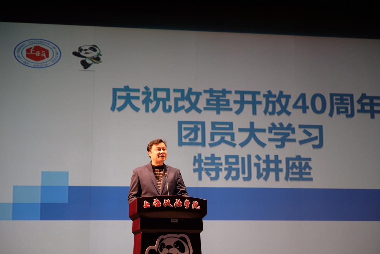 校党委副书记、副校长刘刚为与会志愿者、学生骨干作庆祝改革开放40周年团员大学习特别讲座,他结合习近平总书记在庆祝改革开放40周年大会上重要讲话精神以及在首届中国国际进口博览会开幕式上的主旨演讲和考察上海时的重要讲话精神,详细阐述了改革开放对于中国崛起、上海发展、青年成长的重要意义,他以自身成长经历为例,生动指出一代人有一代人的使命担当,勉励全校学子牢记总书记对青年的殷殷教诲,发扬进博会“小叶子”志愿服务精神,在日常学习生活中从小落实、从细做起,始终心怀远大理想、锤炼过硬本领、满怀饱满激情,以青春之我、奋斗之我投身于新时代改革开放的宏伟征程,为实现“两个一百年”奋斗目标与上海建设卓越的全球城市与社会主义现代化国际大都市贡献青春力量。
