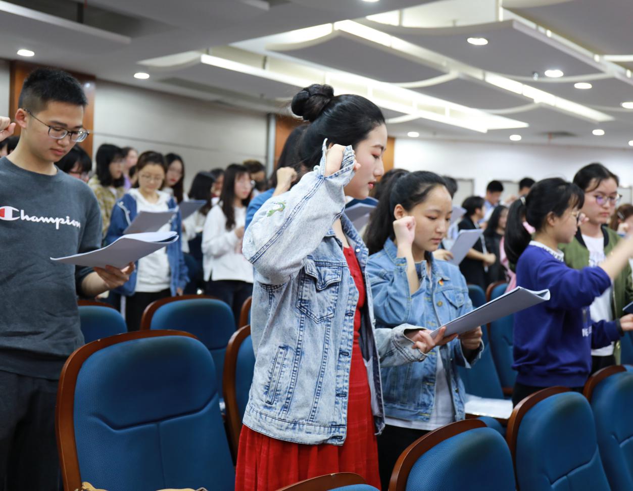 宣誓仪式由校学生会主席徐轶凡主持,全体学生干部起立高举右拳,在徐轶凡的带领下大声宣读誓词,表示坚决遵守条例要求及坚决贯彻严己自律甘为学生服务的态度。