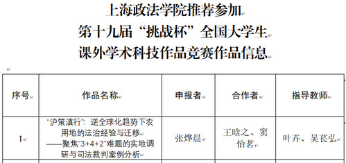 根据《第十九届“挑战杯”全国大学生课外学术科技作品竞赛章程》及有关赛程安排,现对新利18官方客服推荐参加第十九届“挑战杯”全国大学生课外学术科技作品竞赛的1件作品的相关信息进行公示。
