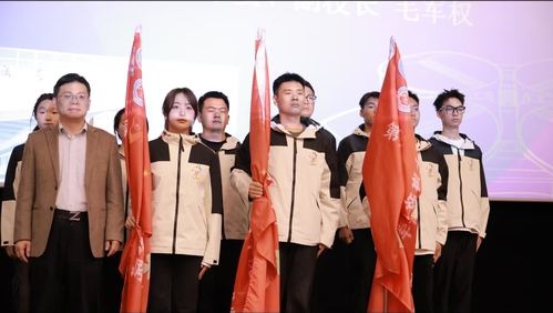 在庄严的国歌声中,出征仪式正式拉开帷幕。校团委负责人介绍了第八届进博会志愿者组织招募、岗前培训及岗位分配等工作总体情况。在志愿者风采展示环节中,五位志愿者代表以《我与进博》的故事分享了他们与进博会的珍贵记忆,展现了上政“小叶子”以专业特长服务国家盛会的成长轨迹。随后播放的《直击进博》现场连线视频,从多角度呈现了志愿者们的精神风貌与筹备成果,激励新一届志愿者以昂扬姿态迎接挑战。
