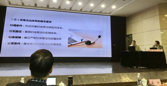 谭小勇教授受邀在“体育现代治理与体育法治建设”主题做“新时代中国体育法治框架体系论纲”的专题报告。