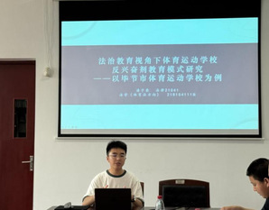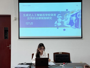 本次答辩以“学术深度与创新价值”为核心标准,涵盖人工智能、反兴奋剂教育模式研究、中国足球协会内部监管优化研究等前沿领域。答辩现场,学生以PPT形式展示研究成果,从研究背景、研究路径、方法创新到实践应用进行系统阐述。例如,法律学院(体育法方向)学生潘子豪的论文以毕节市体育运动学校为例,对法治教育视角下体育运动学校反兴奋剂教育模式进行了研究,帮助清晰了反兴奋剂教育基层工作开展的具体模式及其教育实效性。