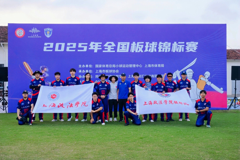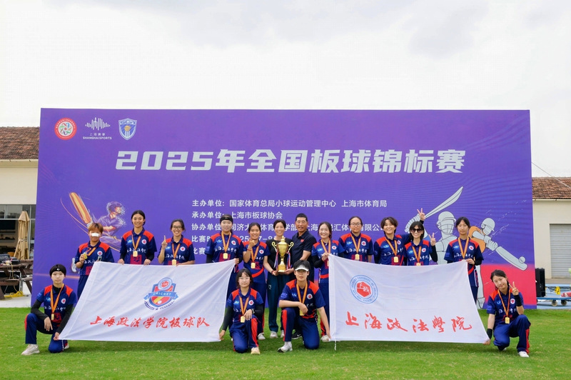 在为期12天的赛程中,参赛运动员遭遇了台风降雨和高温酷暑的双重考验,但他们依旧全力以赴,为观众呈现了多场精彩对决。男子非专业组的冠亚军决赛于8月1日完成争夺。我校板球队与济南职业学院的较量尤为精彩绝伦。上半场我校板球队率先发起进攻,然而仅获得86分,且在17回合内击球员被全员淘汰,赛场形势不容乐观。就在场下观众普遍不看好的情况下,上政板球队的教练员王存文、郑丽丽鼓励队员:“板球比赛,不到最后一个球完成都不能轻易论输赢”。上政板球队的运动健儿们顶住巨大压力,坚持投好每一个球,尽最大努力压制对方得分。队员们根据赛场局势及时调整投球、防守策略,最终在15回合将济南职业学院的击球员全部淘汰,并将对方的得分控制在56分,成功赢得这场冠亚军之争。