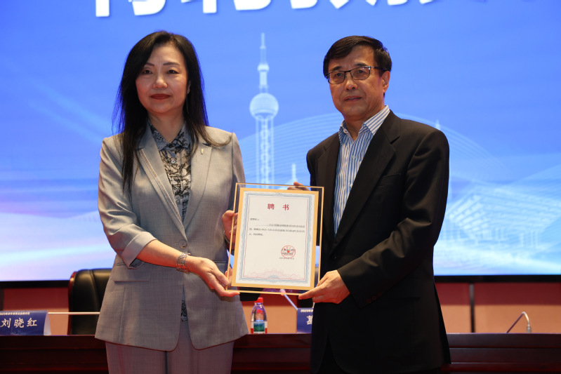 特聘教授聘任仪式上,刘晓红校长为中国法学会体育法学研究会常务副会长、学术委员会主任、清华大学法学院博士生导师田思源教授颁发聘书。