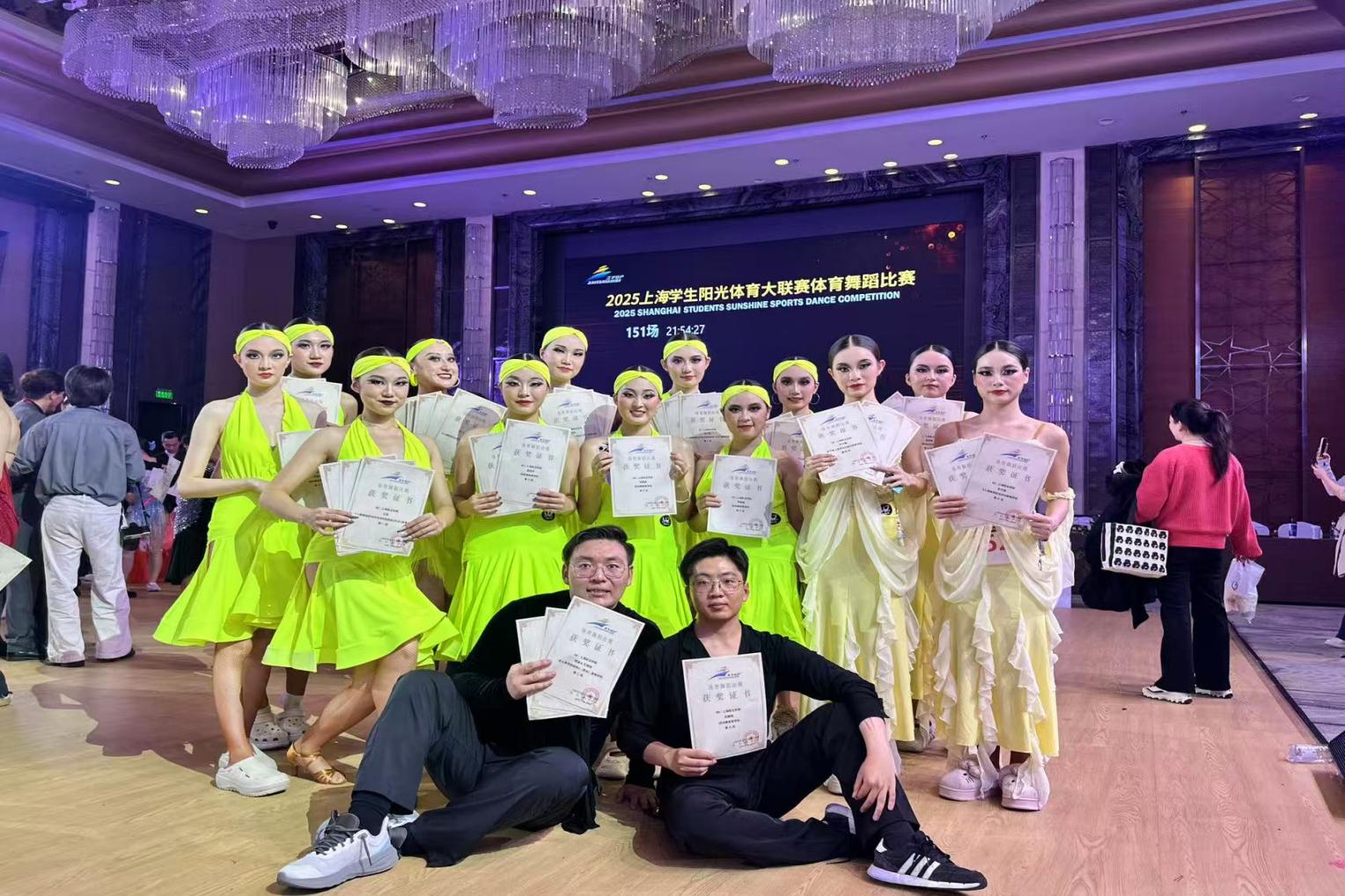 2025年11月15日,上海市学生阳光体育大联赛体育舞蹈比赛在上海扬子江丽笙精选酒店三楼宴会厅举行。在激烈的角逐与层层筛选中,我校国标舞队不负众望、再攀高峰,充分展现了团队凝心聚力的奋斗风采与扎实过硬的舞蹈功底。