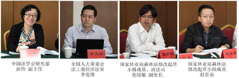 中国法学会环境资源法学研究会副会长、天津大学法学院院长孙佑海教授、武汉大学环境法研究所王树义教授,最高人民法院行政庭梁凤云审判长,中南林业科技大学法学院院长周训芳教授,南京林业大学法学院副院长张红霄教授,浙江农林大学法政学院法律系主任马永双教授,中央民族大学法学院张步峰教授,环境资源法学研究会理事、北京林业大学法学系杨朝霞副教授,中国政法大学民商经济法学院马燕副教授,北京林业大学法学系副主任魏华副教授,吉林森工集团资源经营部姜荣春处长,北京中林资产评估有限公司景谦平副总经理,中国林产品公司沈北灵副总经理,广西林业集团法律顾问涂方祥等专家学者参加会议。环境资源法学研究会副会长、中国人民大学法学院周珂教授提交了书面修改意见。