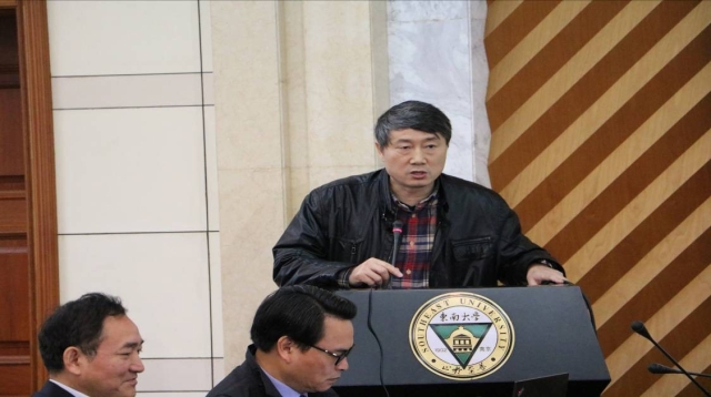 会议第八项由南京农业大学党委书记左惟教授致辞。作为东南大学法学院的缔造者之一,左书记指出,学院能取得今天的成绩实属不易,这不仅归功于于两任院长的努力,而且得益于兄弟院系和各职能部处的大力支持。左书记希望东南大学法学院能继续保持和发扬自身的特色和优势,获得更好的发展。