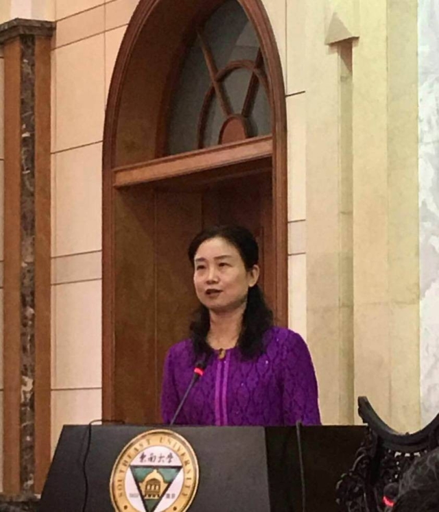 最后,东南大学党委书记易红教授致辞并做出重要指示。易书记首先肯定了法学院近十年来所取得的成绩,鼓励全院师生齐心合力,精诚团结,将法学院建设推向新高。易书记强调,法学院的发展离不开众多兄弟院系的支持,必须坚持与学校优势学科相结合的思路,做到重点突破,凸显东大特色,实现跨越式发展;学院教师必须继续重视教学和科研,把教书育人摆在第一位,为社会输出更多、更优秀的法律人才;学院要大力加强师资建设,引进优秀优秀人才,完善科研梯队,努力培养出更多的“法学家”和“长江学者”。