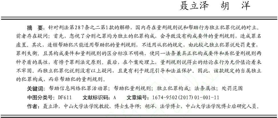帮助信息网络犯罪活动的规范属性及司法适用_聂立泽