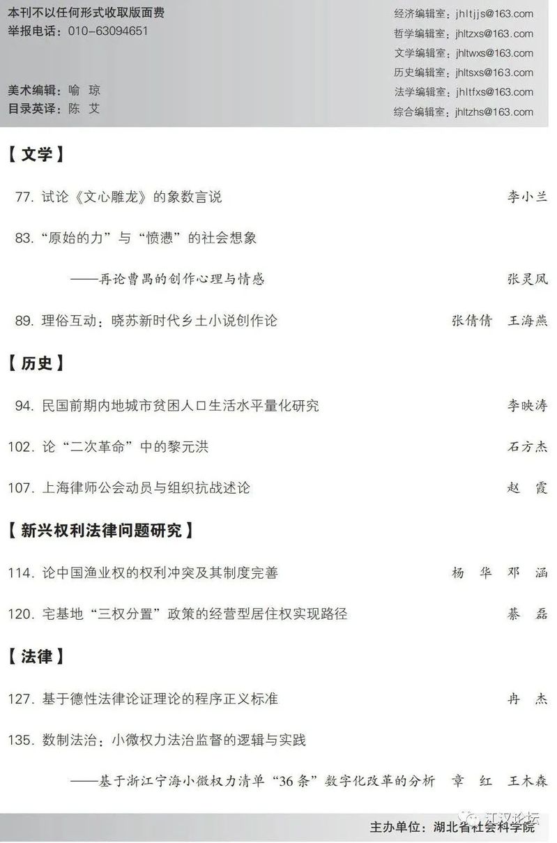 《江汉论坛》2022年第12期目录及文章摘要