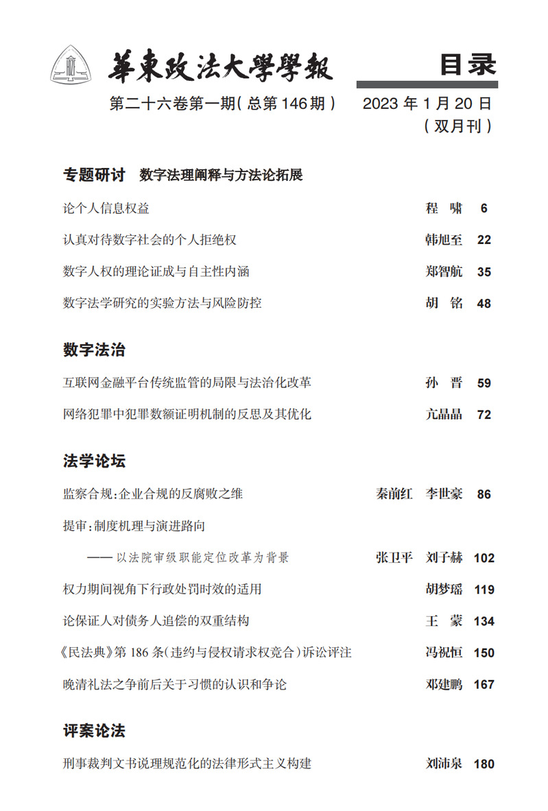 信息来源: 华东政法大学学报 微信公众号 发布日期: 2023-01-21 浏览次数: 11