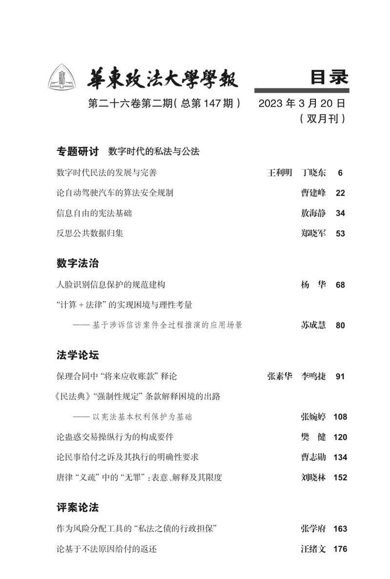 《华东政法大学学报》2023年第2期要目