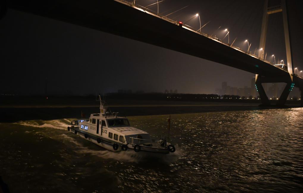 长江航运公安局开展“雷霆行动”,深夜在长江武汉段打击非法采砂(2019年2月13日摄)。新华社记者程敏 摄