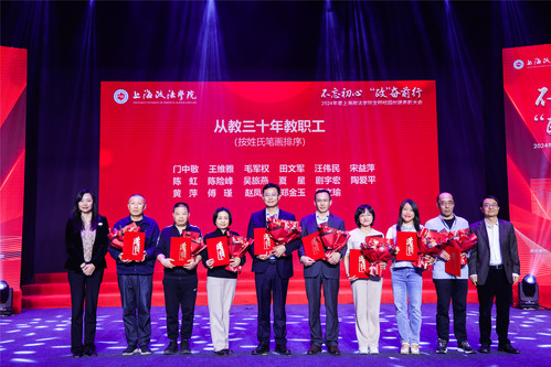 在大会“‘政’奋前行”尾章环节,葛卫华、刘晓红共同为从教三十年教职工代表颁发荣誉证书,致敬他们“为党育人、为国育才”的坚守。刘晓红为国际法学院石俭平、体育部谭小勇、2010级校友裴聪琪颁发“校长奖”。他们以卓越成就树立标杆,激励上政人砥砺前行。会上还宣布成立“红色中国”“法治中国”“青春中国”三支理论宣讲团,葛卫华为宣讲团授旗。宣讲团将聚焦立德树人根本任务,深化理论武装与德法融合教育,筑牢青年理想信念根基,以青春力量传播时代强音。