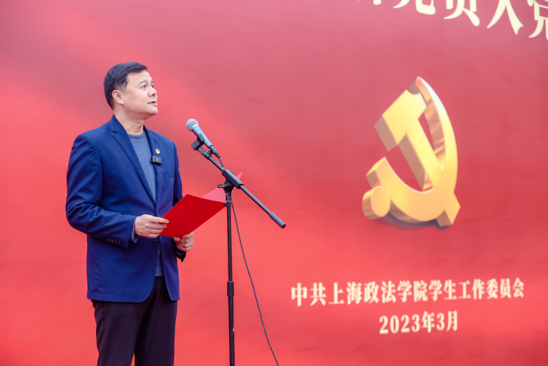 仪式上,国际法学院学生代表共同朗诵诗歌《以党的名义起誓》,基层党支部书记代表、语言文化学院辅导员潘婕和新发展党员代表宋兆航先后发言。