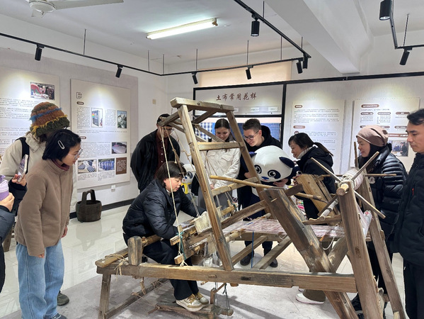 活动伊始,沈佳慧带领大家参观了东泖村土布制作展示厅、茭白叶编织展示厅以及东泖村八大元素文化陈列馆。在土布制作展示厅,陈列着各式各样精美绝伦的传统土布制品,沈佳慧现场演示了传统土布从选料、纺纱到织布一整套复杂制作工艺。大家围聚在旁,目不转睛地看着穿梭的梭子与交织的丝线,亲身感受到了这项历经岁月沉淀的古老技艺所蕴含的独特魅力,不时发出阵阵惊叹。在茭白叶编织展示厅,村民们凭借着灵巧的双手,将看似平凡无奇的茭白叶变废为宝,编织成了形态各异、精美实用的手工艺品,从精巧的篮子、鞋子到栩栩如生的动物造型,无一不展示着村民们精湛的技艺。