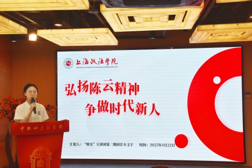丁继珂老师为成员代表赠送带有“唯实”标志的书夹,希望每一位宣讲团成员都能在书海中汲取智慧,在实践中传播真理。颜涵老师阐释“唯实”来源,结合陈云同志“不唯上,不唯书,只唯实”精神内涵和上政“刻苦求实,开拓创新”校训,勉励同学们正确处理付出与回报、理论与实践、个人与集体的关系,在上海建设习近平文化思想最佳实践地过程中贡献上政青年力量,让党的创新理论“声”入人心。