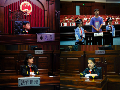 在线路2“悦享未来——发展中的上政之路” 的探索中,学生志愿者带领中小学生们体验“AI+法治”。学生们在B4-模拟法庭换上法官与法警制服,在沉浸式模拟法庭情景剧中体验庭审角色;在上海纪录片学院的实训中心观看《穿越上合》纪录片片段,在演播厅前打卡,体验播音主播的高光时刻;在上合基地听数字人对场馆的讲解,有序参观大厅陈列的展品。志愿者们用“青言青语”传递法治力量,让崇尚法律与国际交流的种子悄然扎根在中小学生心间。