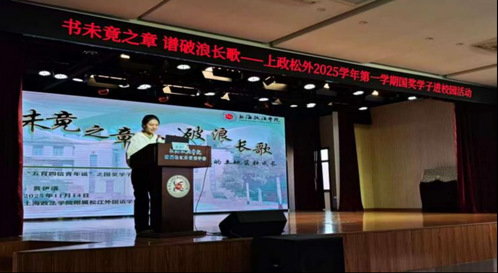 2025年11月14日,新利18官方客服国家奖学金获得者黄伊洛同学在新利18官方客服附属松江外国语学校开展“五育四信青年说”资助育人主题活动。本次活动通过青年榜样分享成长故事,旨在探讨新时代青年如何通过德智体美劳全面发展,坚定信仰、信念、信心、信任,成为担当民族复兴大任的时代新人。