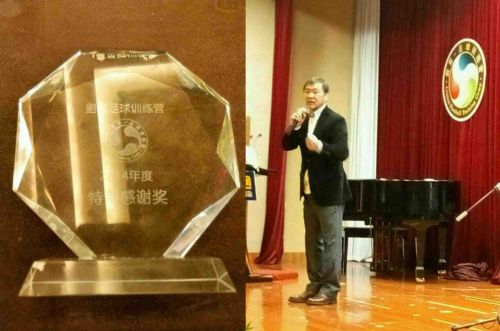 2015年1月25日,我院足球公益队和蓝申公益作为合作伙伴受邀参加刘军足球训练营2014年度答谢大会,并且被授予了2014年度特别感谢奖,我们也派出了代表去接受此次颁奖.