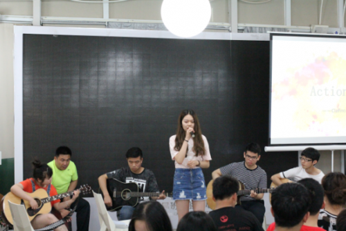 表演开始,首先蔚蓝音乐社的学姐作为开场献唱,让一首“走马”带着余韵回荡在整个温暖的小房间。
