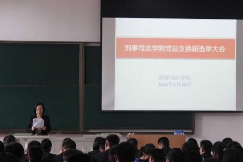 为进一步加强党的基层组织建设,切实履行从严治党,充分发挥基层党组织的战斗堡垒作用,促进学院各项工作高效开展,根据《中国共产党章程》、《中国共产党基层组织选举工作暂行条例》和学校组织部关于党总支换届选举工作的要求,2016年5月10日下午,刑事司法学院党总支换届选举大会在B4-103举行。学院党总支全体教工党员、学生党员参加会议。会议由刑事司法学院党总支副书记徐海琨主持。