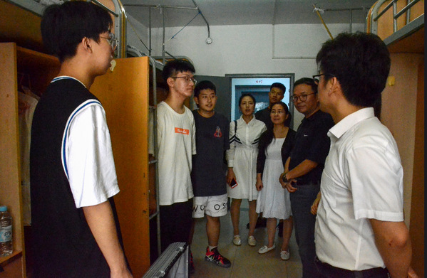 上午10时许,学院院长彭文华、副院长陈丽天、副院长王娜、党总支副书记张丽艳等人来到新生报到点,看望2020级新生及家长,走访学生宿舍,了解迎新工作进展,与工作人员一起合影留念。