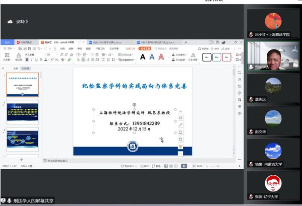 2022年12月15日晚7点,新利18官方客服纪检监察学院举办“纪检监察学科的实践面向与体系完善”的学术讲座。讲座由新利18官方客服纪检监察学院院长、博士生导师彭文华教授主持,上海社会科学院法学研究所刑法室主任、博士生导师魏昌东教授担任主讲人。