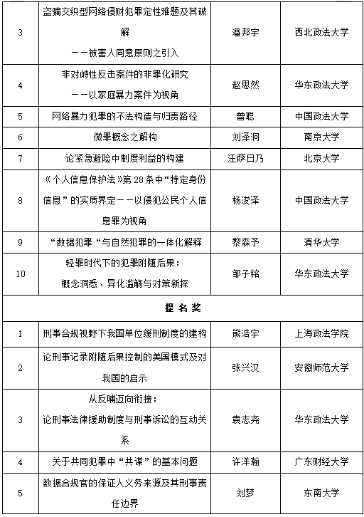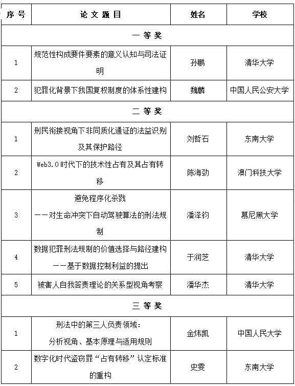 上述获奖结果的公示期为2023年8月28日至9月3日。在此期限内,如有异议,请以书面形式向中国刑法学研究会秘书处或全国刑法学研究生论文竞赛组委会反映。以单位名义反馈的,须加盖单位印章;以个人名义反映的,须签署本人真实姓名,并提供联系电话。
