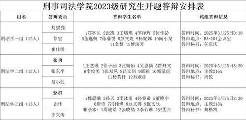 刑事司法学院2023级研究生开题答辩安排表