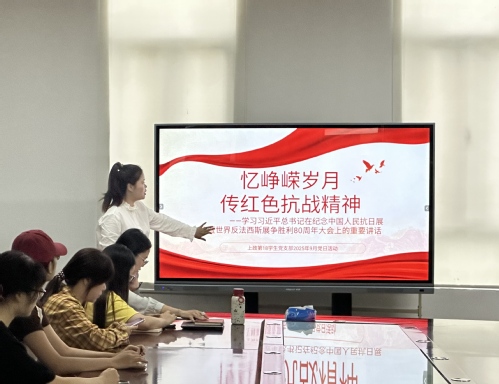 9月25日,上政第18学生党支部于B3-101开展“忆峥嵘岁月,传红色抗战精神”主题党日活动,学习习近平总书记在纪念中国人民抗日战争暨世界反法西斯战争胜利80周年大会上的重要讲话。上政第18学生党支部书记裘欣璐、支部全体党员出席活动,何思源担任主持。