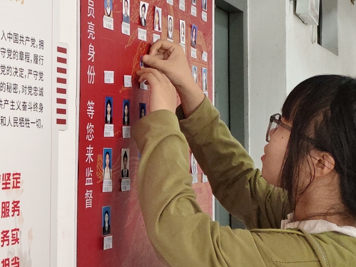 仪式最后,全体成员移步至照片墙前。预备党员们怀着激动的心情,将个人照片贴在照片墙上,时刻提醒自己恪守承诺,让坚守初心谋奋进、扎根群众办实事的信念在互动中进一步升华。