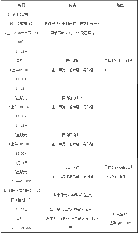 三、成绩公布及待录取时间:拟于4月14日上午九点半公布复试结果和待录取名单,考生需当场确认待录取信息。