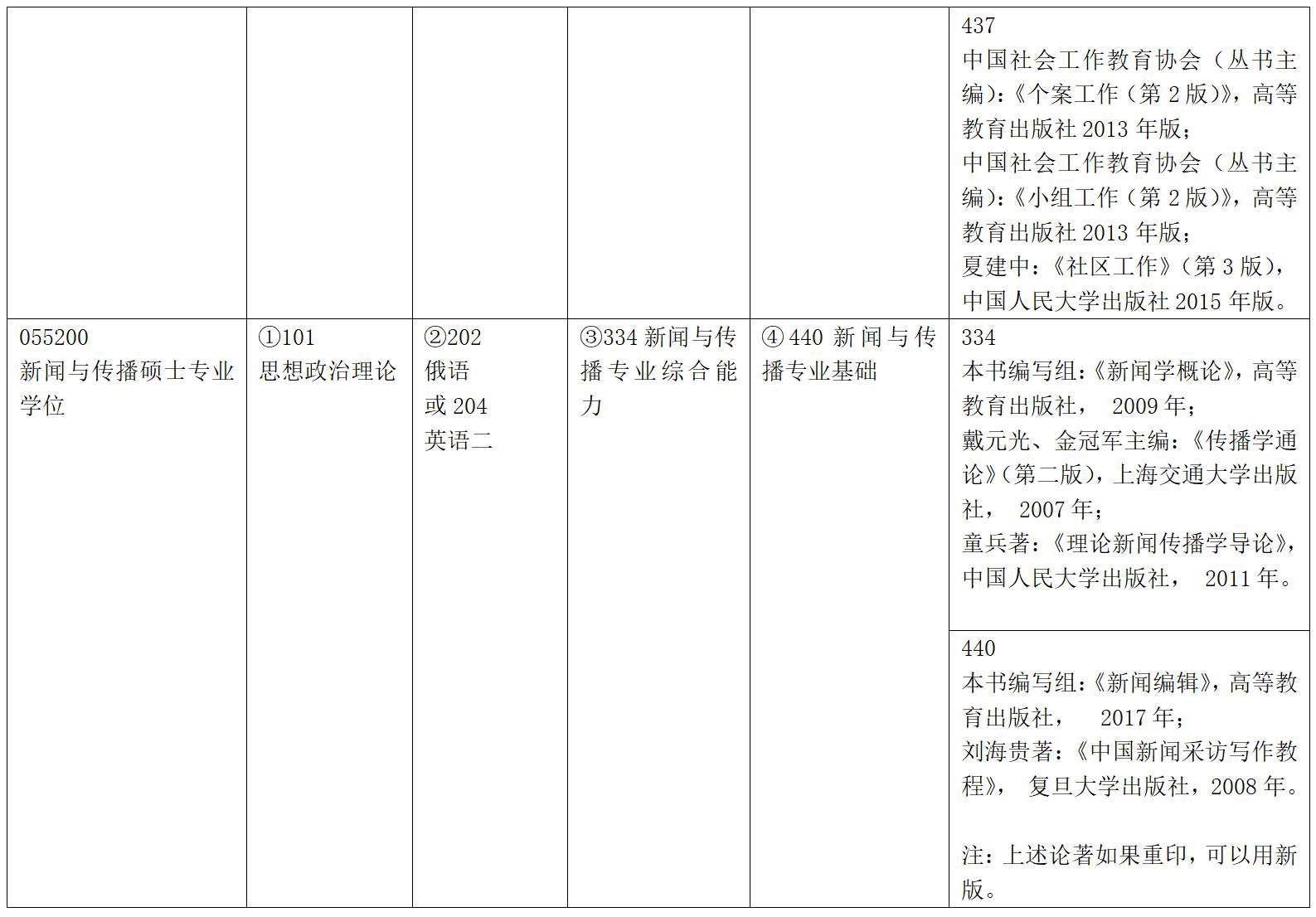 新闻与传播专业学位硕士研究生入学考试初试科目为思想政治理论、外国语、两门业务课,其中思想政治理论、外国语(英语二或俄语)的命题由教育部考试中心承办,两门业务课(新闻与传播专业综合能力、新闻与传播专业基础)由学校自行命题。