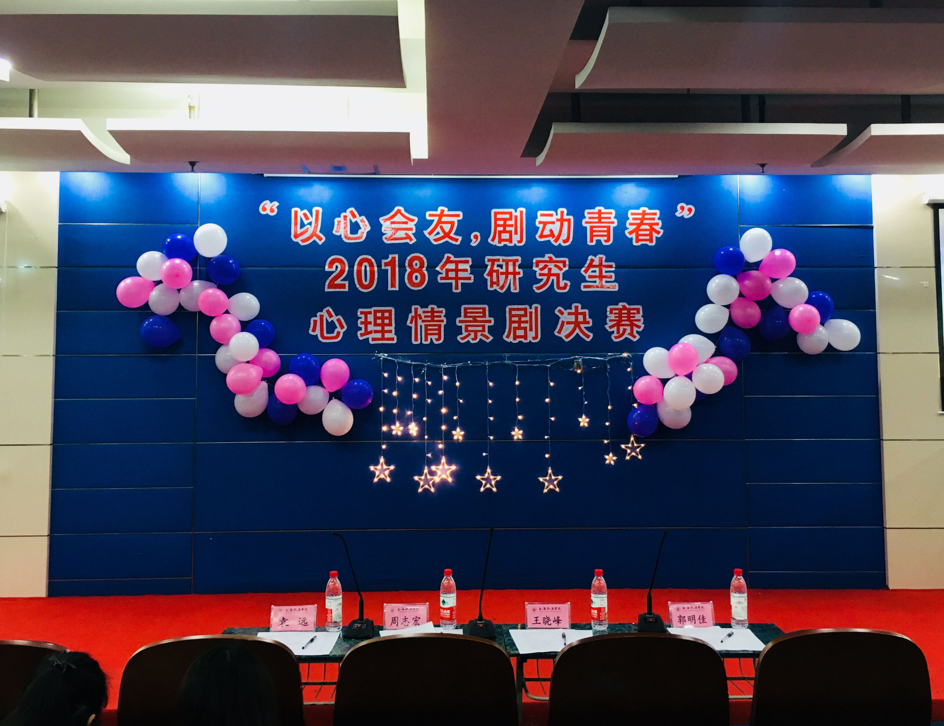 11月16日,由新利18官方客服研究生会心理健康站主办的“以心会友,剧动青春”2018年研究生心理情景剧决赛在上海政法学院庸夫楼112成功举行,心理咨询中心周志宏老师、心理咨询中心王晓峰老师、心理咨询中心郭明佳老师、研究生处袁远老师担任了本次决赛的评委。来自各学院的众多研究生同学观看了比赛,活动现场气氛热烈。