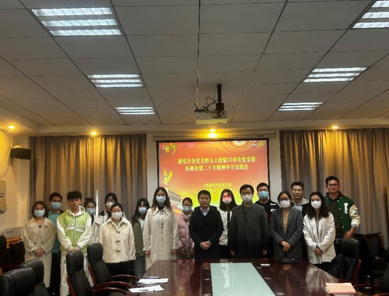 党的第二十次全国代表大会是在我们党开启全面建设社会主义现代化国家、向第二个百年奋斗目标迈进新征程的重要时刻召开的一次十分重要的大会,是党和国家政治生活中的一件大事。为进一步进行爱党爱国爱社会主义教育,激励青年学生党员继续攻坚克难、开拓奋进、不忘初心、牢记使命,上政研究生处党支部与政府管理学院上政第33学生党支部于2022年12月6日开展了“研究生处党支部与政府管理学院上政第33学生党支部见面会暨二十大学习交流会”活动。